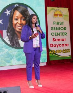 Sự hiện diện của Chủ tịch Nicole Love Hendrickson và Ủy viên Kirkland Carden trên sân khấu không chỉ là một sự kiện trang trọng, mà còn là dấu mốc quan trọng thể hiện sự công nhận sâu sắc dành cho First Senior Center — một tổ chức đang tạo ra ảnh hưởng xã hội lớn trong cộng đồng người cao niên, đặc biệt là cộng đồng người Việt tại Georgia. Buổi đón tiếp diễn ra trong tinh thần cởi mở, thân tình nhưng không kém phần trang trọng. Trên sân khấu, hai vị lãnh đạo đã chia sẻ sự ghi nhận đối với những nỗ lực của First Senior Center trong việc chăm lo đời sống tinh thần lẫn vật chất cho người cao tuổi – từ các chương trình chăm sóc sức khỏe, hoạt động vận động thể chất, kết nối xã hội, cho đến các bữa ăn đậm đà hương vị quê hương được chuẩn bị mỗi ngày.